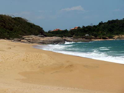 da cidade. è pouco freqüentada, apesar de ser de fácil acesso, pois, possui muitas conchas na areia, mar bravio e o mar atinge grande profundidade nos primeiros passos. Sua orla é coberta pela restinga nativa.