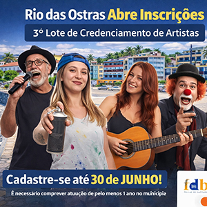 Começou o terceiro lote de credenciamento para artistas, produtores e profissionais do setor cultural de Rio das Ostras. O cadastro permite a contratação para eventos públicos promovidos ou apoiados pelo Poder Público Municipal (Fundação Rio das Ostras de Cultura e Prefeitura). As inscrições, que são gratuitas, seguem abertas até 30 de junho pelo Porta da Froc (www.fundacaoriodasostrasdecultura.rj.gov.br).