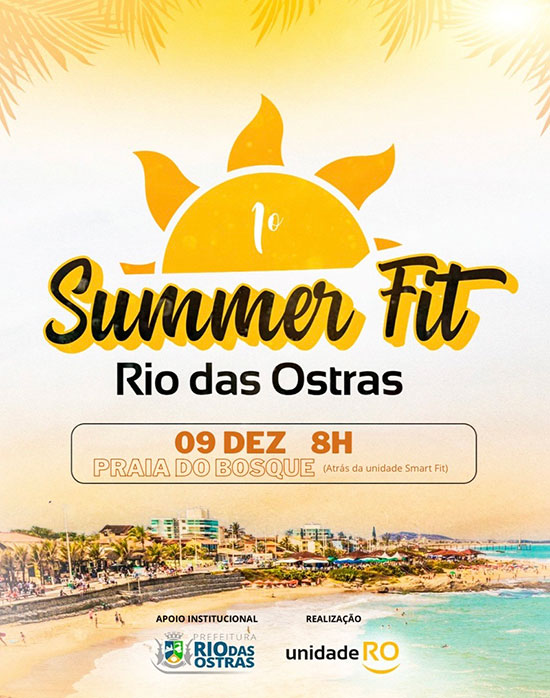 O Summer Fit é gratuito para quem quiser participar e conta com apoio institucional da Prefeitura de Rio das Ostras, por intermédio da Subsecretaria de Esporte e Lazer.