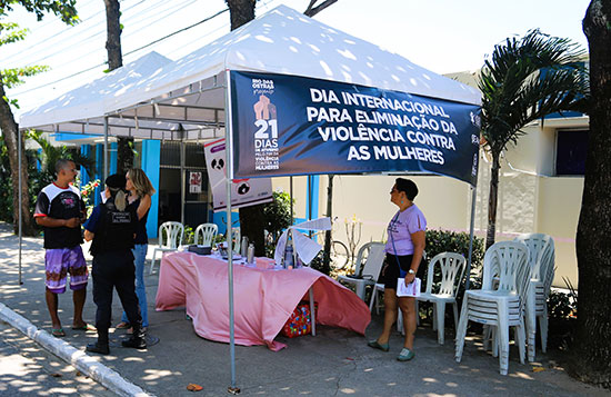 Durante a manhã, uma equipe intersetorial da Prefeitura, envolvendo várias secretarias municipais, abordou homens que passavam pela Avenida Roberto Silveira para levar informações sobre as diversas agressões, estatísticas e de como homens podem colaborar para a erradicação deste crime.