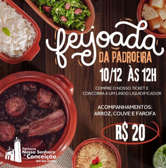 Vem aí...no dia 10 de dezembro, a partir do meio-dia, a feijoada da padroeira.
