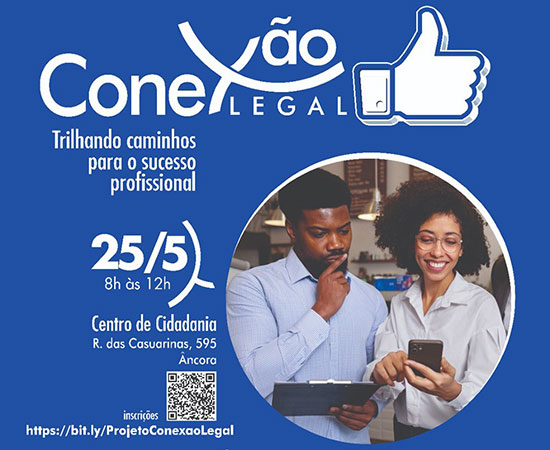 A Prefeitura de Rio das Ostras, por intermédio da Secretaria de Desenvolvimento Econômico e Turismo e do Banco de Empregos, promove neste sábado, dia 25, das 8h às 12h, o evento gratuito Conexão LegaI – Trilhando caminhos para o sucesso profissional, no Centro da Cidadania, no Âncora.