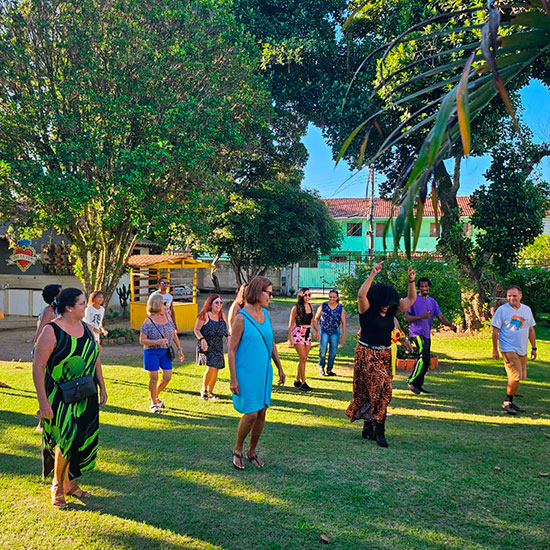 Já o baile deste sábado será comandado, a partir das 16h30, pela professora de educação fÃsica e coreógrafa Ana Paula Emetéria. O objetivo é proporcionar uma confraternização entre as pessoas por meio da dança. "A ideia é colocar todo mundo para dançar, desde a criança até o vovô e a vovó, em um ambiente seguro e agradável. Quem não souber dançar, não tem problema porque vamos ensinar vários passinhos. Este será um Baile Charme inclusivo, onde iremos também incentivar a atividade fÃsica, explicou Ana Paula.