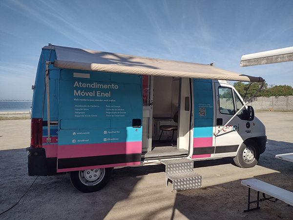 Nesta quinta-feira (6), a van da Enel recebe os clientes na Praça Cantagalo.
