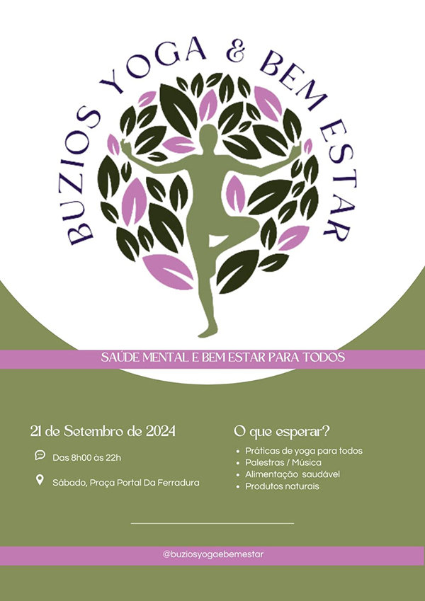 No dia 21 de setembro (sábado), a Praça da Ferradura será cenário para o evento gratuito "Búzios Yoga e Bem-Estar", que acontece das 8h às 18h. A iniciativa celebra o autocuidado, a saúde mental e emocional e o bem-estar físico através de uma programação variada.