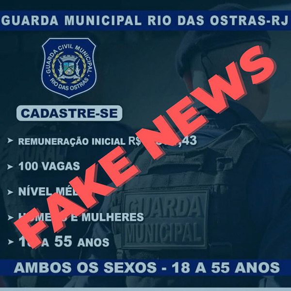 A Prefeitura de Rio das Ostras, por meio da Secretaria de Segurança Pública, esclarece que é falsa a informação, que circula nas redes sociais, sobre contratação para a Guarda Civil Municipal.
