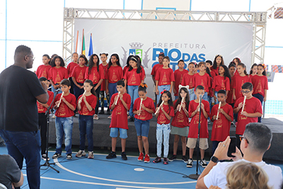 CERIMÔNIA – A cerimônia de inauguração foi aberta com apresentação de violão, flauta e coral do projeto Música e Educação. Alunas da Escola Municipal Maria Gorete Vicente Jorge deram boas-vindas aos novos alunos que ocuparão o espaço. Houve, ainda, homenagens às equipes que atuam na unidade escolar e que vão trabalhar no novo prédio no próximo ano.