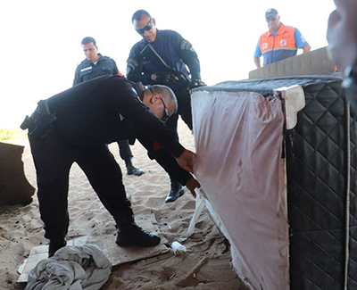 A operação para auxiliar as pessoas em situação de rua continuou no Emissário Submarino, em Costazul, com a retirada de colchões e lençóis do local, foram encontrados uma faca e sinais de que drogas foram utilizadas.