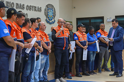 A Defesa Civil de Rio das Ostras recebeu na terça-feira, dia 25, na Câmara Municipal, uma Moção de Aplausos pelos serviços prestados durante o Carnaval. A honraria foi entregue pelo vereador Ronald Medeiros Batista que enalteceu a constante busca por qualificação e lembrou os investimentos feitos pelo Governo em benefício da categoria.