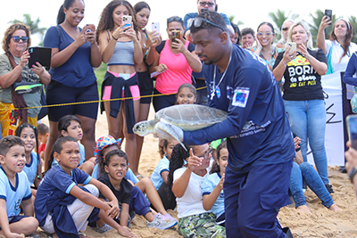 Soltura de tartaruga-verde mobiliza população e reforça consciência ambiental em Rio das Ostras