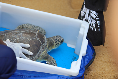 O animal foi bem cuidado desde o resgate e batizado com o nome de "Koa", que significa guerreira em havaiano. A tartaruga-verde é a segunda maior espécie encontrada no Brasil. Na fase adulta, pode chegar a pesar 500kg. "Koa é uma tartaruga jovem, muito comum nesta região, que certamente se aproximou para se alimentar e ficou presa a uma rede. Esse evento de soltura é muito importante para o nosso trabalho de conscientização que fazemos junto aos moradores de cidades costeiras", disse Thiago Graça, zootecnista e educador ambiental do Instituto BW.
