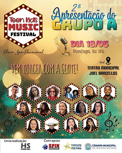 Uma nova etapa do Teen Kids Music Festival 2025 será realizada no Teatro Municipal Joel Barcellos, em Rio das Ostras, neste domingo, dia 18. As apresentações começam às 18 horas e têm entrada franca.
