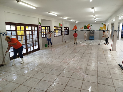 As equipes seguem, ainda, com os trabalhos de pintura interna nas dependências da Creche Municipal Almira Rosa de Souza – Dona Cota. Já a Escola Municipal Padre José Dilson Dórea recebeu uma força-tarefa para a limpeza de calhas.