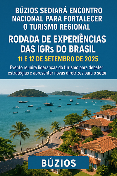Nos dias 11 e 12 de setembro de 2025, Armação dos Búzios (RJ) sediará a Rodada de Experiências das IGRs do Brasil, encontro que reunirá representantes do turismo de todo o país para compartilhar boas práticas e alinhar estratégias voltadas ao fortalecimento das Instâncias de Governança Regionais (IGRs). A programação acontecerá no Hotel Atlântico Búzios, na Orla Bardot.