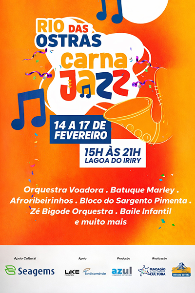 Não fique de fora do Carna Jazz Rio das Ostras 2026.