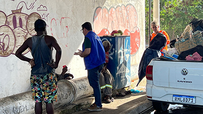 Durante as intervenções, as equipes também estiveram no viaduto do Serramar e na Concha Acústica, na Boca da Barra, realizando o acolhimento de moradores em situação de rua.
