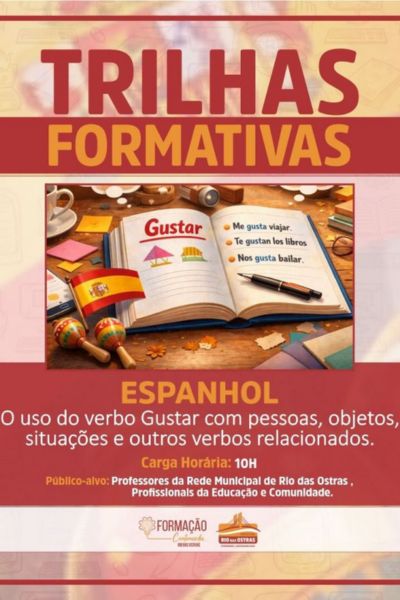 A Prefeitura de Rio das Ostras, por intermédio da Secretaria de Educação, Esporte e Lazer, acaba de anunciar a abertura de uma nova Trilha Formativa desenvolvida pelo Núcleo de Gestão Pedagógica. Desta vez, a iniciativa foca no aprimoramento linguístico com o tema “O uso do verbo gustar com pessoas, objetos, situações e outros verbos relacionados”, buscando fortalecer as competências comunicativas no idioma espanhol.