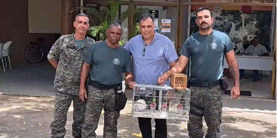 31/01/2025 - Guardas ambientais de Rio das Ostras resgataram nesta quarta, dia 29, dois canários-da-terra e apreenderam o alçapão usado por um homem para captura de pássaros silvestres, crime que prevê multa e detenção. Ao ser abordado pelos agentes, o suspeito fugiu deixando a gaiola e o equipamento para trás. A ação aconteceu enquanto a equipe fazia ronda no Canal de Medeiros para localizar e levar para atendimento veterinário a capivara que está com um aro preso ao corpo. Os canários resgatados foram levados para o Parque dos Pássaros...