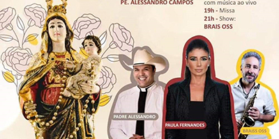 12/08/2024 - Será entre os dias 15 a 18 de agosto, na praça Feliciano Sodré, em Casimiro de Abreu. A programação social começa no dia 15, quinta-feira, dia de Nossa Senhora da Saúde onde acontecerá a tradicional Coroação. Dia 16, se apresenta o padre Alessandro Campos, com muito louvor e música sertaneja, a partir das 21h. Já no sábado, dia 17, a partir das 22h, quem anima o público é a cantora Paula Fernandes. Encerrando a festa, no domingo, dia 18, às 21h, o cantor católico Braiss Oss vai emocionar a todos com seu saxofone. ...