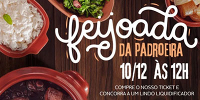 08/12/2023 - Vem aí...no dia 10 de dezembro, a partir do meio-dia, a feijoada da padroeira. Adquira por 20 reais e ainda concorra um sorteio de liquidificador. Maiores informações, na secretaria paroquial....