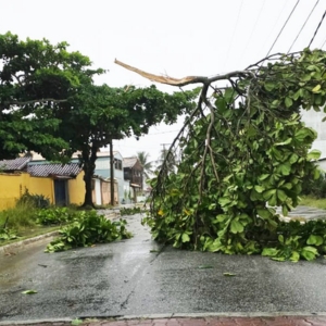 02/04/2026 - Após fortes pancadas de chuva, que totalizaram 31 milÃmetros em 24 horas, e a ocorrência de ventos de até 55 km/h, a Defesa Civil de Rio das Ostras atua no corte de árvores que caÃram sobre vias e residências, desde esta terça-feira, dia 31. Toda a ação tem como objetivo garantir a segurança da população e o restabelecimento da normalidade.