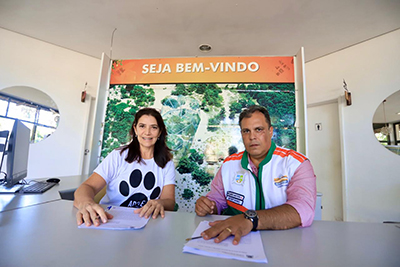 A protetora individual e presidente do Instituto ADOTE, Joana Cruz, assinou o Termo de Doação junto com o secretário de Meio Ambiente, Ricardo Torres.