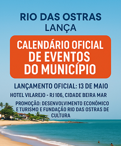O lançamento oficial do Calendário de Eventos do Município acontece no próximo dia 13 de maio. O encontro, que será realizado no Hotel Vilarejo, que fica na RJ 106, em Cidade Beira Mar, é promovido pela Secretaria de Desenvolvimento Econômico e Turismo em parceria com a Fundação Rio das Ostras de Cultura.