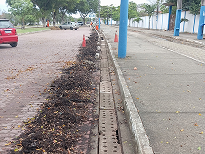 Entre os locais que demandavam ação urgente, estavam as redes do entorno do Cemitério do Âncora e da Clínica da Família, de onde foram retiradas 35 toneladas de lixo e areia