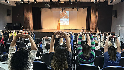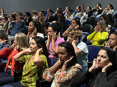 Dessa vez, a coordenadora das PICS da Secretaria de Estado de Saúde, Nice Santos Carvalho; e a assessora técnica Ana Couto, ministraram oficinas de Automassagem e Auriculoterapia, com orientações práticas e teóricas. "Essas são ações muito importantes para garantir uma melhoria na qualidade de vida do cidadão e na prevenção de doenças. A nossa ideia é capacitar todos os territórios do Estado com as PICS porque essas são práticas muito importantes", explicou Ana Couto.