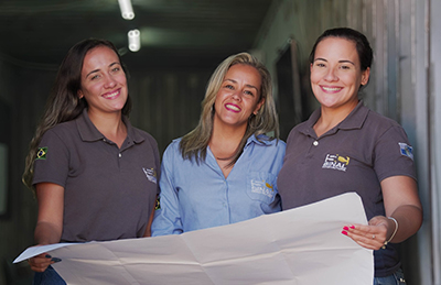 FOTO: da direita pra esquerda: Tatiana de Andrade (engenheira de campo), Katiusca Freire (engenheira de suprimentos) e Carolina Côrtes (coordenadora de obras).