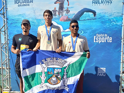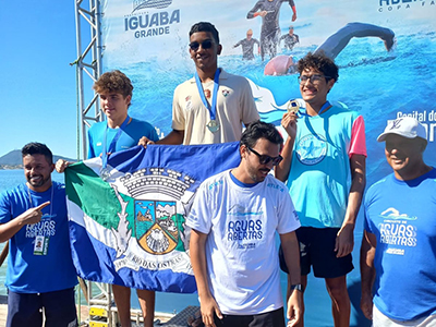 Rio das Ostras foi destaque em mais uma competição de natação em águas abertas. Atletas riostrenses subiram ao pódio na Copa FARJ - Federação Aquática do Estado do Rio de Janeiro, realizada em Iguaba Grande, no último domingo, dia 29. Entre os ganhadores das provas, estão três integrantes do programa municipal Bolsa Atleta, da Secretaria de Educação, Esporte e Lazer, os nadadores Arthur Ferreira, Lucas Valentim e Ernesto Martins.