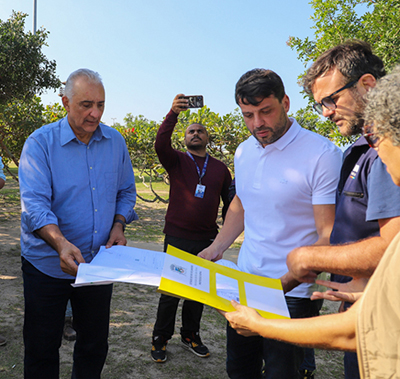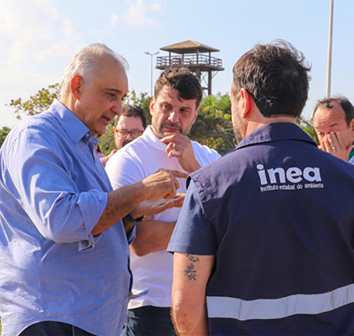 O prefeito Carlos Augusto Balthazar recebeu nesta quarta-feira, dia 9, o secretário de Estado do Ambiente e Sustentabilidade, Bernardo Rossi; e o presidente do Instituto Estadual do Ambiente (Inea), Renato Jordão Bussiere, para dar início às obras de revitalização da Área de Proteção Ambiental da Lagoa de Iriry, que serão realizadas pelo Programa Limpa Rio Margens.