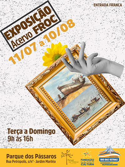 Durante mais de duas décadas, a Casa de Cultura Bento Costa Júnior foi palco das principais mostras realizadas na Cidade. Obras cedidas pelos expositores compõem a rica coleção de artes plásticas da Fundação Rio das Ostras de Cultura (Froc). Uma seleção dessas peças compõe a exposição "Acervo Froc", que entra em cartaz nesta sexta, 11, no Parque dos Pássaros.