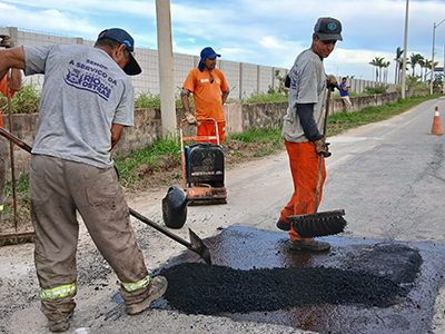 Os serviços consistem em remoção do trecho deteriorado, tratamento da base e recomposição do pavimento. O cronograma seguirá beneficiando outras localidades.