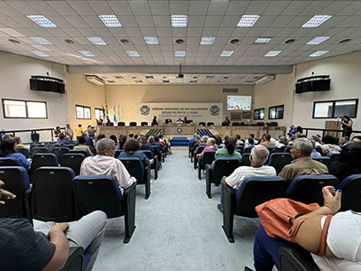 PRESENÇAS – Além do secretário de Saúde, Fábio Simões, participaram da Audiência Pública, a subsecretária de Atenção Primária, Rosimeri Azevedo, a subsecretária de Atenção Especializada, Deiva Motta, o presidente do Fundo Municipal de Saúde, Evandro Minguta e o presidente do Conselho Municipal de Saúde, Carlos Eduardo de Oliveira Gomes. Representando o Legislativo Municipal, estiveram presentes os vereadores Orlando Ferreira Neto, Ronald Medeiros, Rodrigo Jorge Barros e Leonardo de Paula Tavares. Representantes da sociedade civil e moradores também prestigiaram o evento.