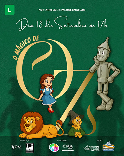 O Teatro Municipal Joel Barcellos se prepara para receber um dos clássicos mais amados de todos os tempos. Neste sábado, 13 de setembro, às 17h, o público de Rio das Ostras poderá embarcar na jornada encantadora de "O Mágico de Oz – O Musical".