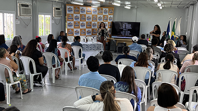 Com o tema "Audiovisual e Comunidade Surda: Tradução Intersemiótica e Inclusão Comunicacional", as palestras realizadas no Núcleo de Gestão Pedagógica (Nugepe) reuniram alunos surdos da Rede Municipal de Ensino, pais e responsáveis, intérpretes da LÃngua Brasileira de Sinais (Libras), professores de Atendimento Educacional Especializado (AEE), além das equipes pedagógicas.