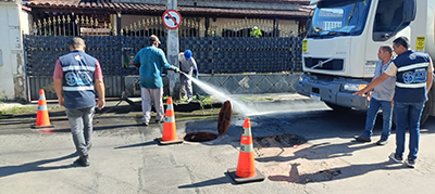 Na segunda 12, equipes estiveram em Nova Cidade, fazendo a vistoria e limpeza das redes de drenagem e fiscalizando ligações irregulares de esgoto