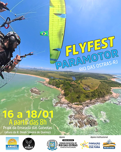 PARAMOTOR - As atividades do Fly Fest Paramotor, reunindo pilotos dos municÃpios do Rio de Janeiro e de outros estados, se concentram na Praia da Enseada das Gaivotas, na altura da Rua Dinah Silveira de Queiroz, e integram o lançamento do projeto "Asas da Enseada".