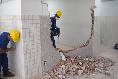 A Escola Municipal João Bento Duarte Neto está recebendo melhorias nos banheiros dos professores, na secretaria e no almoxarifado. Na Escola Municipal Mônica Andrade, é realizada a reparação da cobertura da quadra esportiva.