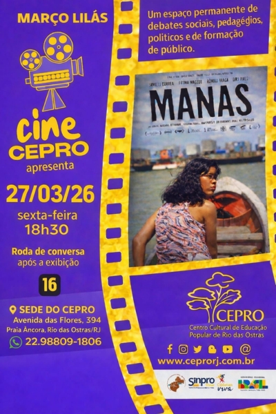Um convite à reflexão sobre os desafios enfrentados por meninas e mulheres marca a próxima edição do Cine Cepro, em Rio das Ostras. O Ponto de Cultura - Centro Cultural de Educação Popular do Município realiza, na próxima sexta, 27, às 18h30, a exibição do filme brasileiro “Manas”, seguida de roda de conversa aberta ao público, na sede da instituição, em Praia Âncora. As participantes receberão absorventes doados pelo perfil Sepavolá. O filme será exibido para os alunos do pré-vestibular social.