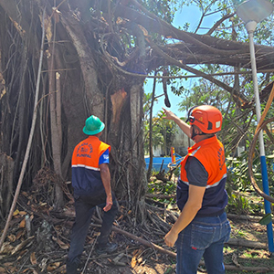 Ventos derrubam parte de árvore e Defesa Civil isola área para proteger população