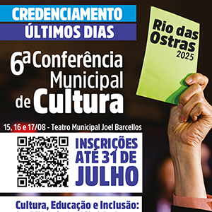 25/07/2025 - Rio das Ostras está se preparando para receber a 6ª Conferência Municipal de Cultura, que será realizada de 15 a 17 de agosto, no Teatro Municipal Joel Barcellos. Profissionais do setor, entre artistas, técnicos e representantes de diferentes setores culturais, têm até às 17h59 da próxima quinta-feira, dia 31, para fazer a inscrição para o evento pelo link www.editais.fundacaoriodasostrasdecultura.rj.gov.br. A programação será repleta de debates, apresentações artísticas e ainda vai contar com a eleição de novos conselheir...